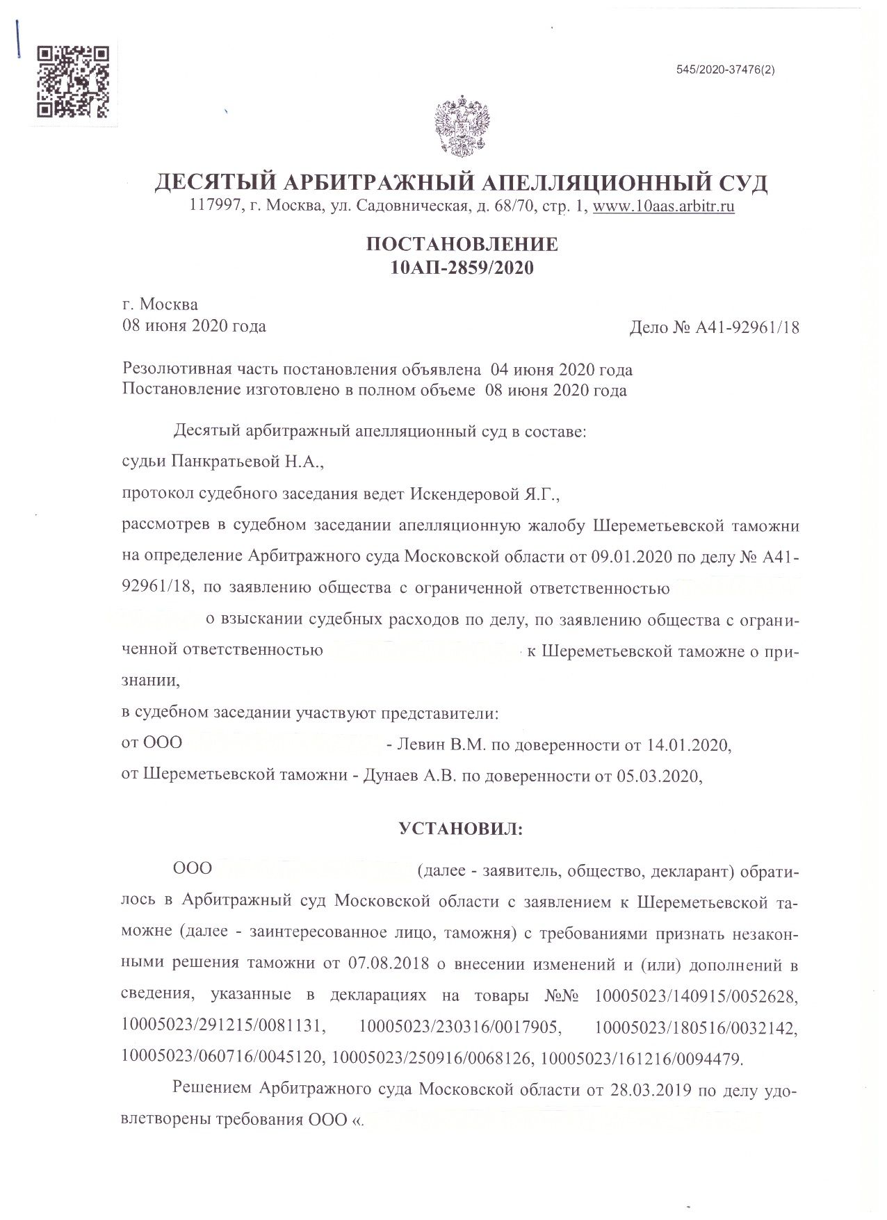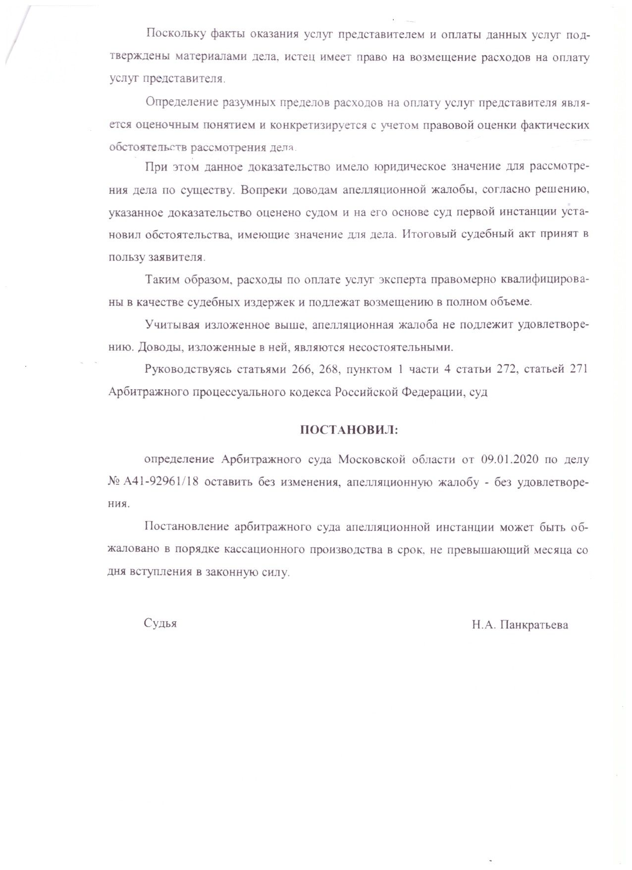 | извлечение из постановления десятого арбитражного апелляционного суда от 08.06.2020 по делу № а41-92961/2018 | |